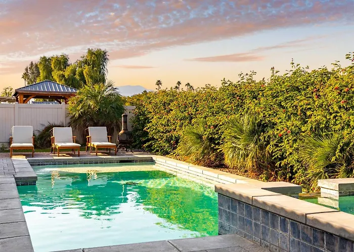 Luxe Indio Stay W Pool Tiki Bar Fire Pit Near Coachella Longfellow villa bevindt zich op 2 km van het Rancho Las Flores Park en Evenementenlocatie en biedt toegang tot verschillende toeristische plekken in de buurt. Dit vakantiehuis biedt gasten een ontspannende ervaring met een bubbelbad.